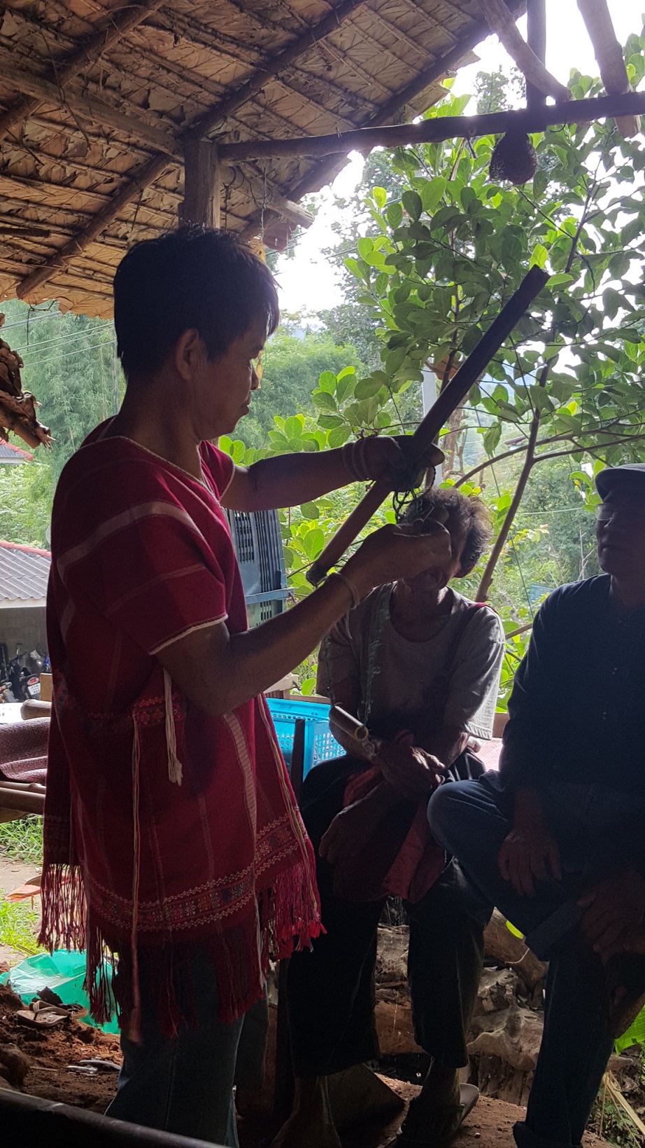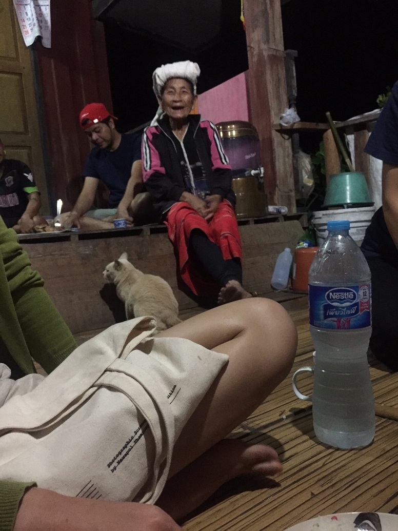 พิพี (แปลว่าย่าหรือยาย) ชาวปกากะญอที่ทำกับข้าวให้พวกเรา แกน่ารักมาก ตอนนี้แกกำลังหัดพูดภาษาไทยอยู่ค่ะ เพราะจะมีรายการทีวีมาถ่าย