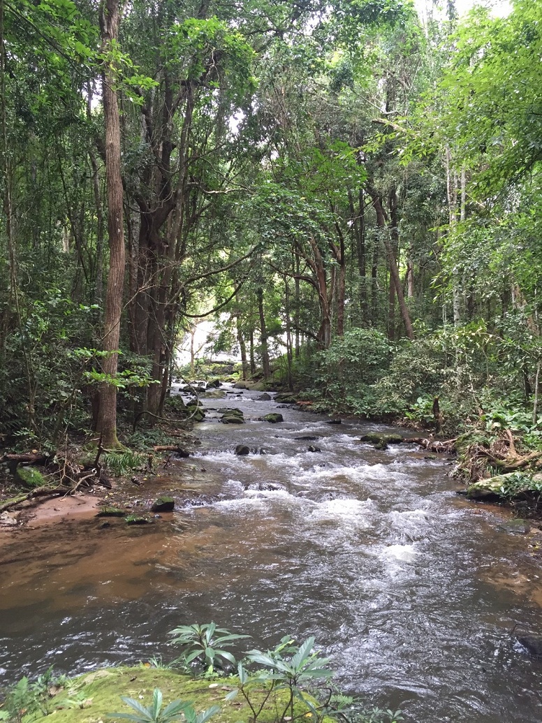พวกเราตัดสินใจไปเดินน้ำตกรักจังหรือน้ำตกผาดอกเสี้ยว โดยมีไกด์พี่เคนชาวปกากะญอพาเที่ยว เพราะการเที่ยวที่นี่ต้องมีคนท้องที่พาเที่ยวนะคะ ห้ามเดินเอง เริ่มเดินประมาณเก้าโมง ใช้เวลาเดินกันประมาณสองชั่วโมงกว่าๆค่ะ ตอนเดินได้ยินเสียงชนีในป่าร้องด้วยนะคะ เดินป่ากันเสร็จ พวกเราก็นั่งเล่นบ้านพี่สมศักดิ์แป๊บนึง แล้วออกเดินทางกลับ ขากลับเราเหมารถของชาวบ้านมาส่งตรงถนนใหญ่ที่มีรถเหลืองไปตัวเมืองเชียงใหม่ (ใช้เวลาเดินทางประมาณชั่วโมงครึ่ง) หลังจากนั้นก็นั่งรถแดงไปสนามบินค่ะ