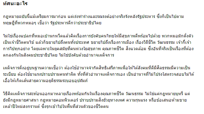 เพราะเต็มไปด้วยตรรกะที่สุดแสนจะป่วยจริงๆ เช่น ที่แกเขียนว่า "อย่างทฤษฎีที่พวกหมอๆ เชื่อว่า รัฐประหารดีกว่าประชาธิปไตย"