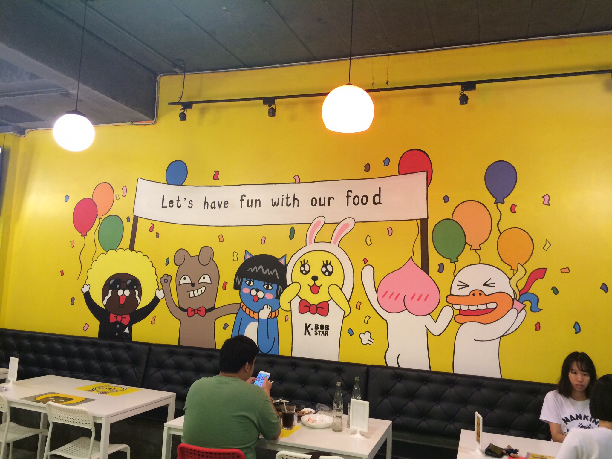 ขอบอกเลยว่าร้านโคตรน่ารักกกก ตกแต่งร้านด้วยตัวการ์ตูนจาก Kakao Talk เป็น App คุยกันเหมือนไลน์ เป็นของเกาหลีจ้า