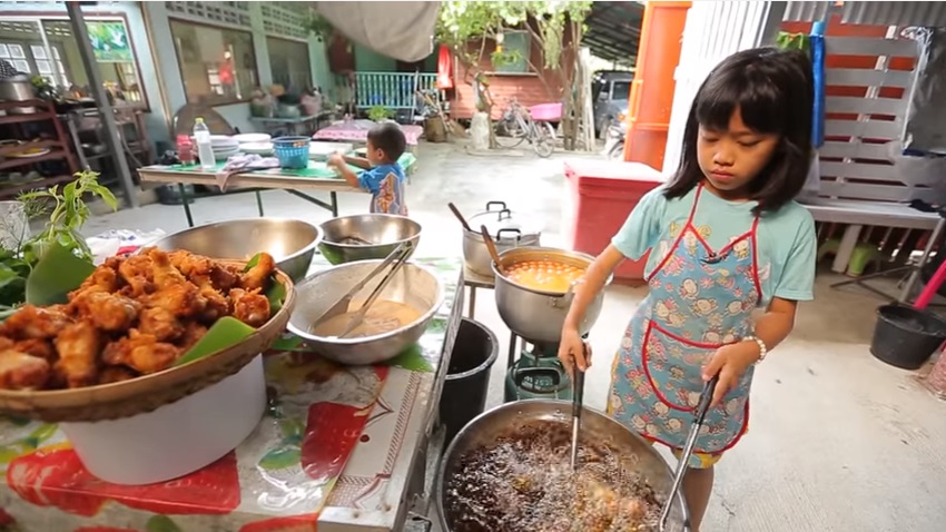 ถึงจะตัวเล็ก! แต่ความสามารถใหญ่เกินตัว แม่ค้าตัวน้อยคนนี้สามารถทอดไก่ในกระทะร้อนๆ ได้ด้วยตัวเองและยังขยันขันแข็งเดินเสิร์ฟอาหารทั่วตลาดน้ำบางน้ำผึ้ง อีกทั้งยังต้องรับภาระดูแลน้องชายวัย 4 ขวบและ 2 ขวบด้วย