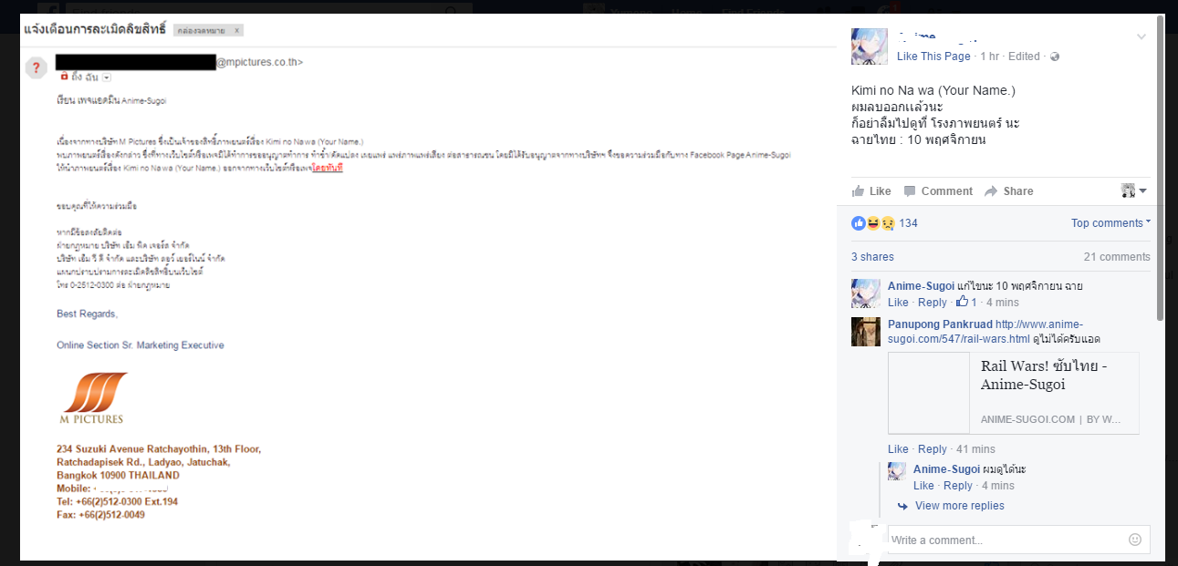 ขอชื่อชนบริษัท Mpictures กรณี Your Name Sub Thai
