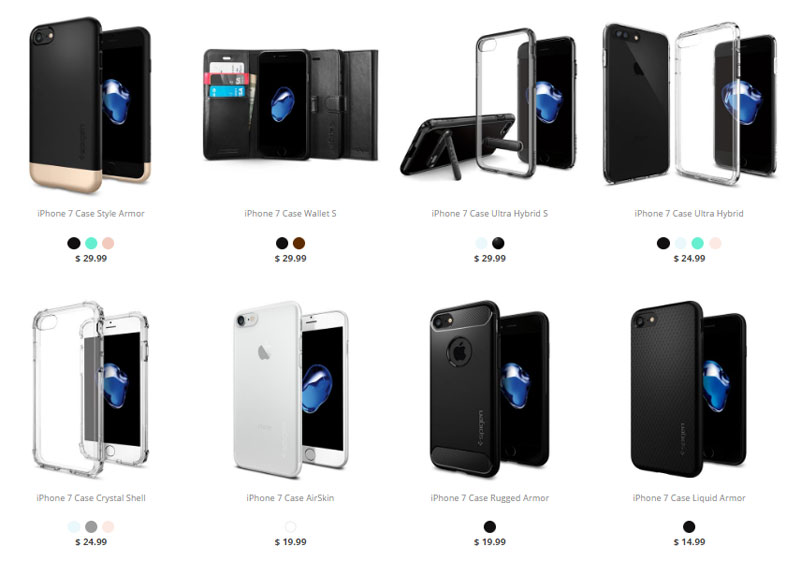 Spigen - แบรนด์ยอดนิยมของคนไทย ได้โชว์สินค้าบนเว็บไซต์ก่อนวันที่ iPhone เปิดตัวเสียอีก มีเคสหลากหลายแบบทั้งเคส TPU , เคสหนัง , เคสกันกระแทก ฯลฯ