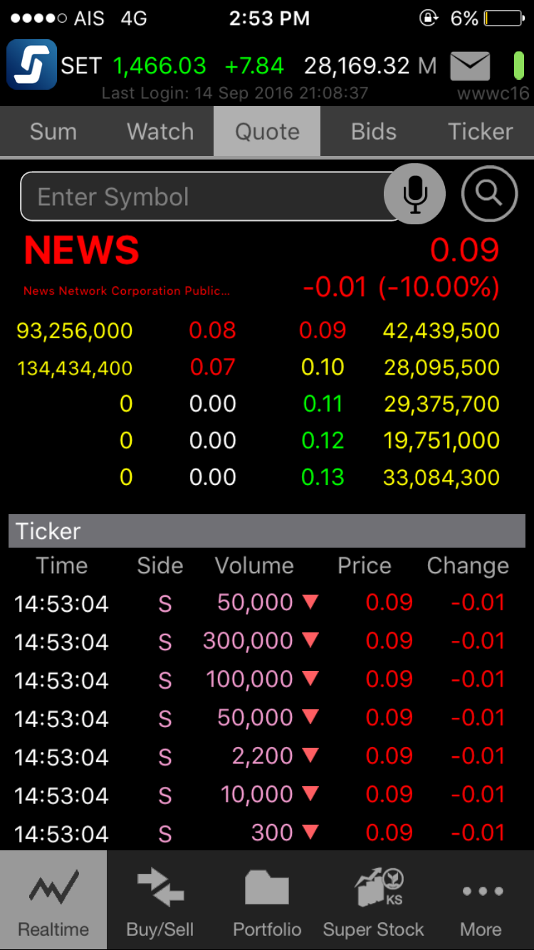 จากรูปนะครับวันนี้ราคาช่วงบ่าย ลงต่อเนื่องมีคนเทขายตั้งแต่เมื่อวาน ทีละ ร้อยล้านกว่าหุ้น เหมือนมีคนพยายามกดราคาหุ้นตัวนี้ลงมา