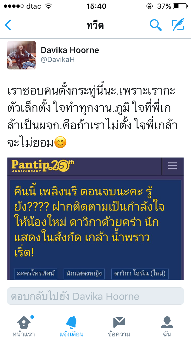 ใหม่. ดาวิกา. เล่นพันทิปด้วยจร้าา. เมื่อคืนเข้ามาส่องพันทิปพร้อมทำสิ่งนี้ลงทวิตเตอร์.