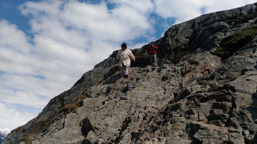 วันที่ 4 ของการเที่ยว 3 เฒ่า+1 เจอน้ำตกระหว่างทาง ที่ตื่นเต้นเพราะทำให้เรารู้ว่า หินหนีบ Kjerag rock เกิดได้อย่างไร จากนั้นก้เป้นการปีนเขาขึ้นและลง 3 ลูก ก่อนจะถึง Kjerag rock แล้วตอนกลับก็ต้องปีน ขึ้ยและลง ถูเขา 3 ลูกนี้ ....hiking 9 ชม.