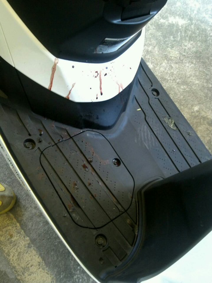 ถึงเราจะไม่เคยได้ยินเสียงปืนมาก่อน แต่เราก็รู้ว่านี่เป็นการโดนยิงแน่ๆ เหมือนมีคนเอาก้อนหินมาปาแรงๆใส่ขา แล้วความเจ็บนั้นก็ค่อยๆเพิ่มมากขึ้น จนกลายเป็นปวดและตึงๆ เราพยายามตั้งสติพาตัวเองไปให้ไกลจากจุดนั้น แล้วขี่ต่อเข้าไปที่อพาทเม้นแห่งนึง ต่อมามีรปภ.และชาวบ้านแถวนั้นช่วยเหลือเรา