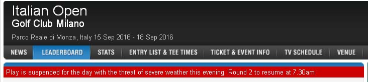เมื่อวานแข่งไม่จบครับ อากาศแปรปรวนอย่างหนัก ก็เลยยกยอดหลุมที่ เหลือมาแข่งวันนี้ ซึ่งก็จะตรงกับเวลาบ้านเรา 12.30 น.