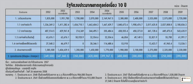งั้นมาดูการตังงบขาดดุลย้อนหลังสิบปี คงไม่ต้องบอกนะ ปีไหนรัฐบาลไหน