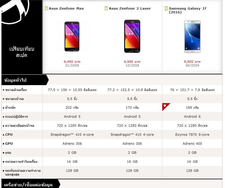 ระหว่าง Zenfone Max, Zenfone 2 Laser และ Samsung J7 version 2 ตัวไหนดีที่สุดคะ