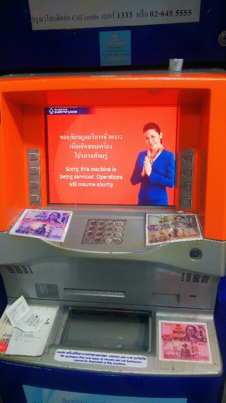 เป็นแบบนี้บ่อยมาก จนแอบคิดไม่ดีว่า ธนาคารเค้าล้อคตู้ไม่ให้ใช้นอกเวลา/ยามวิกาลหรือเปล่า