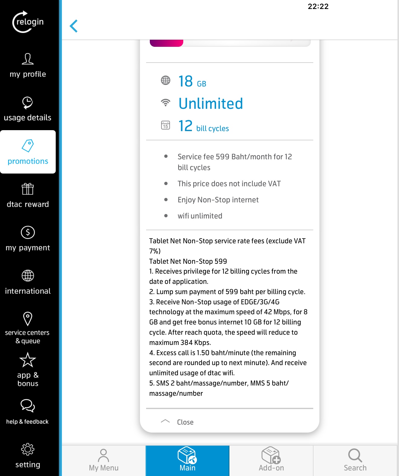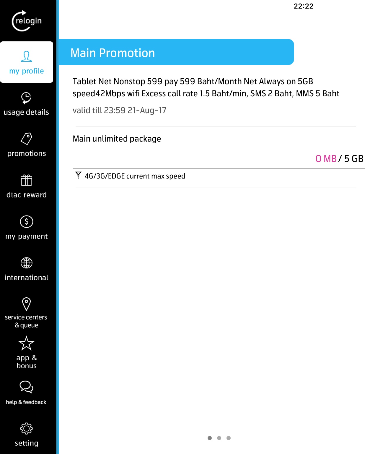 เมื่อเดือนที่แล้ว ผมได้ซื้อ ipad mini จาก ดีแทค พร้อมสมัครโปร 599 โดยจ่ายค่าบริการล่วงหน้าไป ซึ่งตามโบรชัวร์ที่สมัคร ควรจะได้ปริมาณดาต้าอินเตอร์เนต 18 gb