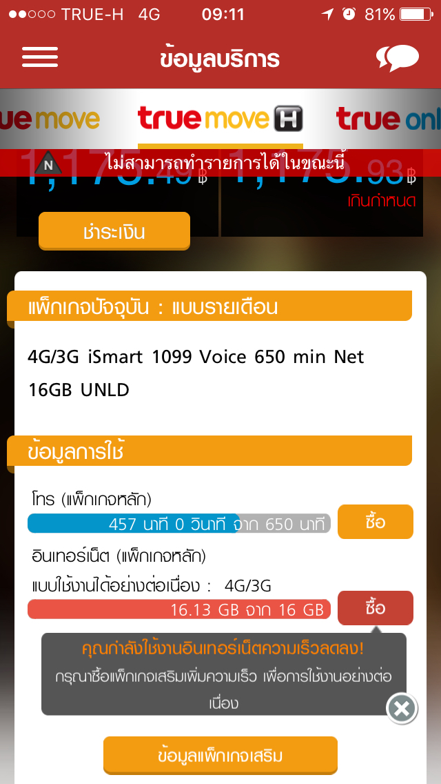 สมัครแพกเกจเสริมอินเตอร์เน็ทใน True wallet ไม่ได้ เกิดจากอะไรคะ ขึ้นว่า ไม่สามารถทำรายการได้ กรุณาทำรายการใหม่ในภายหลัง