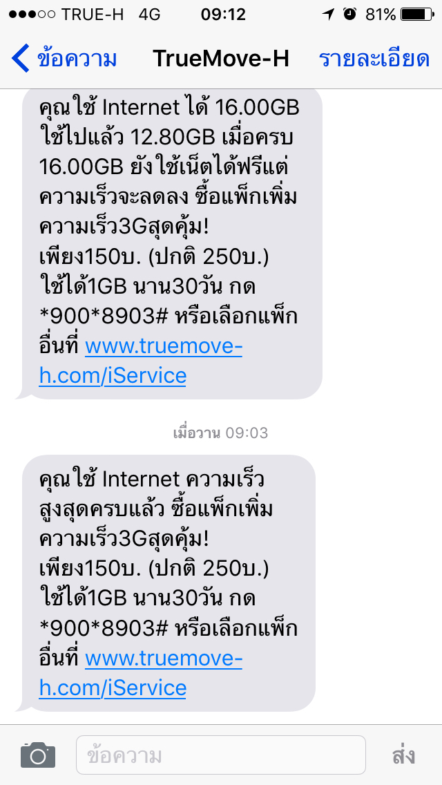 ยังใช้แพคเกตเน็ตเสริมไม่ครบเลยแต่ส่งsms มาว่าหมดซะแล้ว