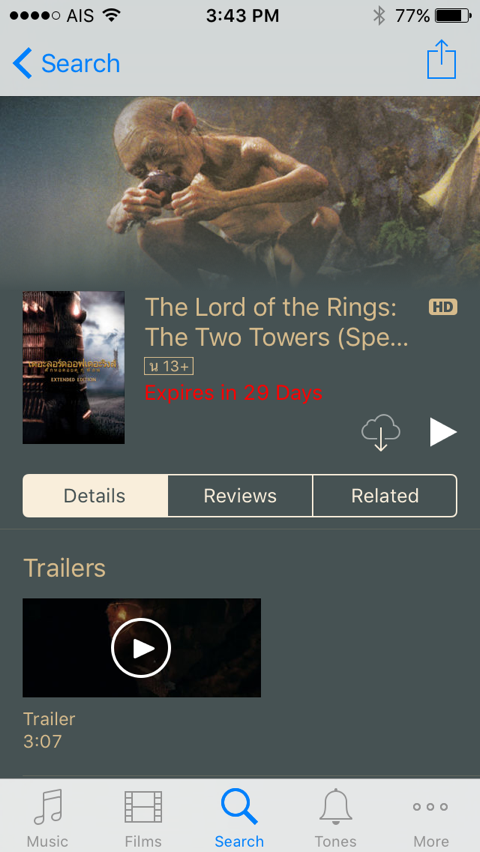 แต่ครับ บน iOS 10 เจอดักคอไว้, แม้พื้นที่ในเครื่องคุณจะไม่พอ เราก็จะขอหักเงินคุณไว้เลยเพราะคุณกดเช่า ! หลังจากทำเรื่องจ่ายเงินแล้ว ค่อยขึ้น popup ถามว่า มีงจะโหลดหนังมั้ย !! โอย เจ็บปวดมากครับ ผมโดนไปเรียบร้อย Lord of the rings Two Towers ... กรูดูไปแล้วเรื่องนี้... ขอไปร้องไห้ซัก 3 นาที T_T ไว้ผมจะลองทำเรื่องขอเงินคืนใช้การ์ด "รู้เท่าไม่ถึงกาจน์" แนบไปกับอีเมลล์ดู ว่าจะคืนได้มั้ย