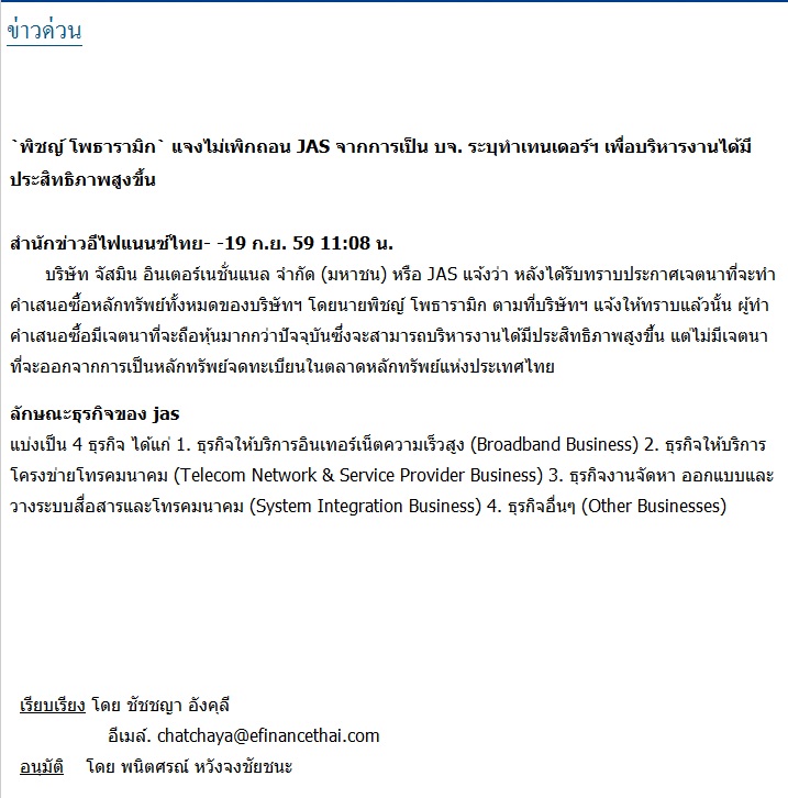 ข่าวด่วน พิชญ์ ไม่เพิกถอน Jas ออกจาก บจ