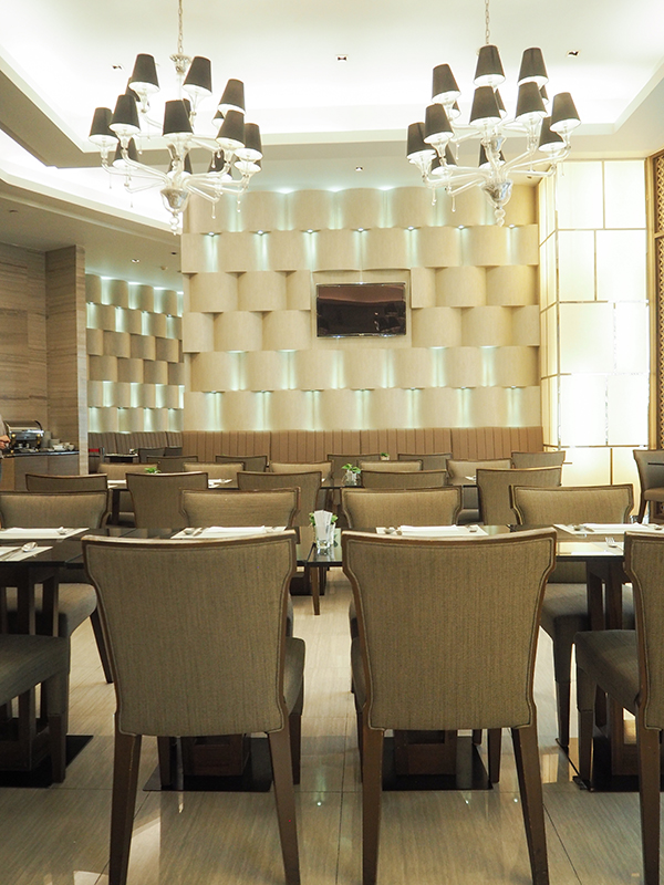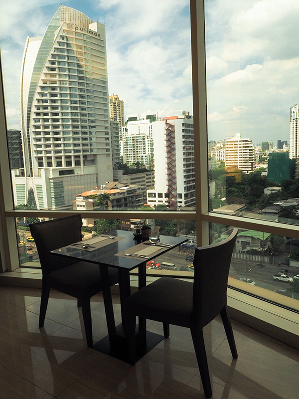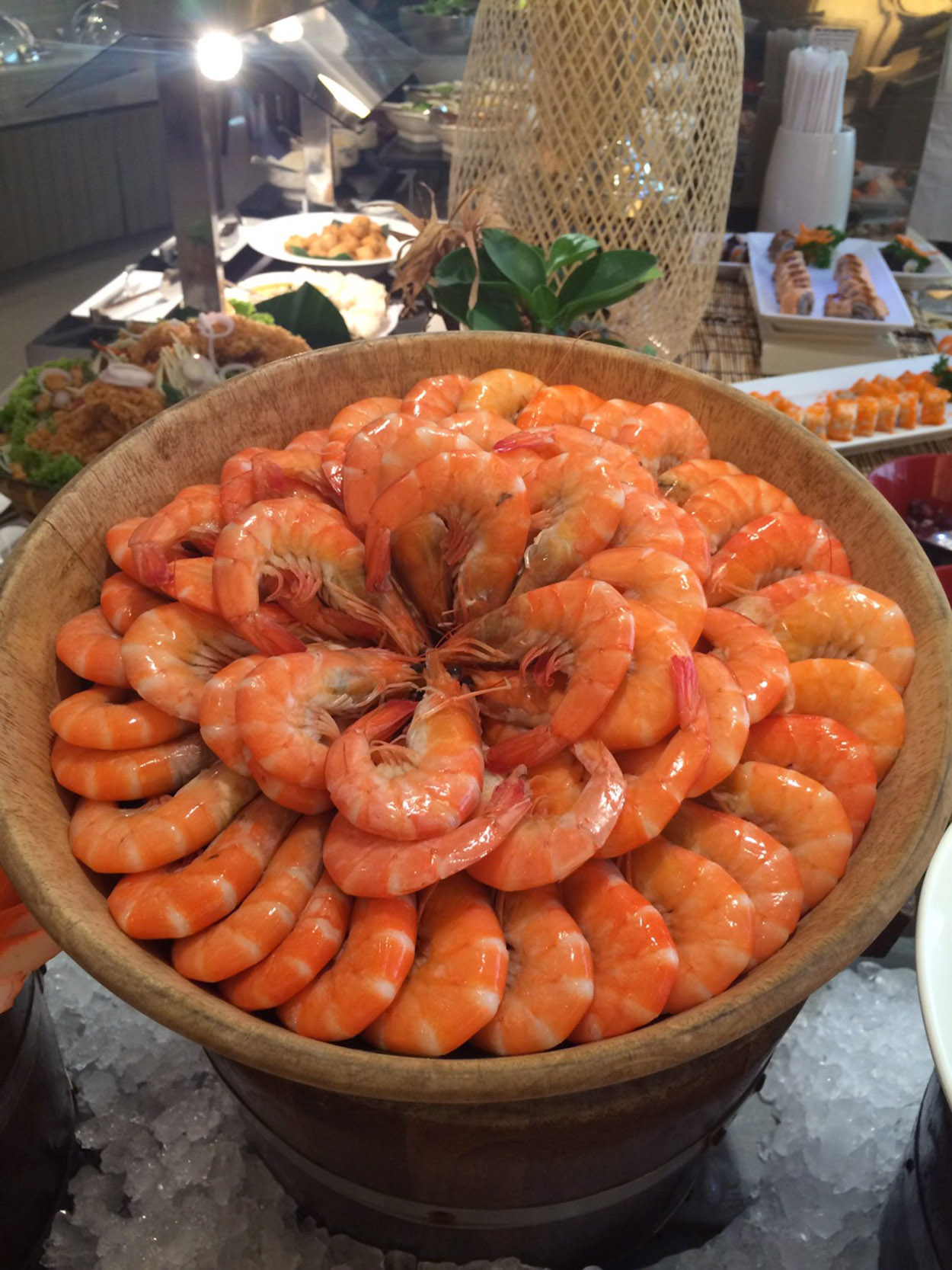 ไปถึงหน้าร้านก็ต้องสงบเสงี่ยมเจียมตัว เพราะการตกแต่งที่โดดเด่นกว่าร้านอื่นๆในละแวกข้างเคียง ทำให้ผมและทีมงานแอบเกร็งเล็กน้อย แต่เราแอบคิดในใจว่า เอ๊ หน้าร้านแค่นี้ จะรองรับลูกค้าบุฟเฟ่ต์ได้อย่างไร เราเก็บงำความสงสัยไว้จนได้รับการต้อนรับอย่างดีจากพนักงาน และนำเราไปที่โต๊ะ เราจึงได้พบว่าแท้จริงที่เราเห็นหน้าร้านนั้นเป็นเพียงแค่ทางเข้าครับ เพราะด้านในยังมีอีกเกือบ 100 โต๊ะ แถมยังมีทั้งโซนที่อยู่ติดกับไลน์อาหาร และโซนใกล้วิวที่สามารถมองเห็นตึกระฟ้าของกรุงเทพฯได้อย่างดี
