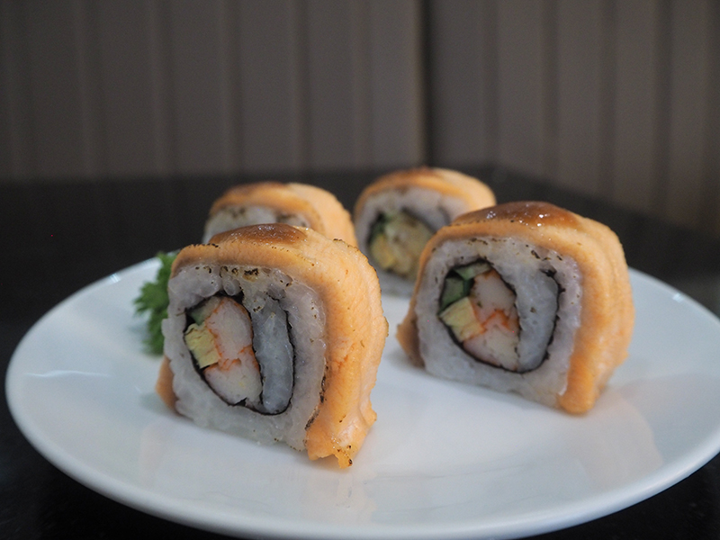 แซลมอนโรล (อย่างที่บอกไป ทางร้านแอบกระซิบว่ารอบหน้าจะเป็นโปรฯแบบจัดเต็ม ขนมาเสิร์ฟเฉพาะแซลมอนกันเลยทีเดียว จะเอามาทำอะไรยังไงก็ต้องรอติดตามครับ)