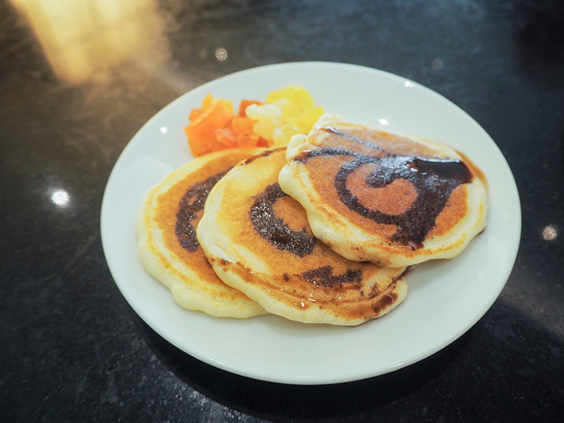 ด้านบนเป็นแพนเค้กที่มีเครื่องทำสดๆ พร้อมไซรัปและซอสให้เลือกเยอะเลยล่ะครับ นอกจากนี้ยังมีขนมไทย ไอศกรีม และผลไม้ด้วยนะ มีให้เลือกเต็มไปหมดเลย
