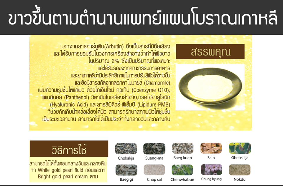 ► มีสารสกัดจากชะเอม, ทองคำและสารสกัดจากพืชธรรมชาติ 10 ชนิด(โอกยงซัน) ช่วยให้ผิวสดใสเปล่งปลั่ง สุขภาพดี