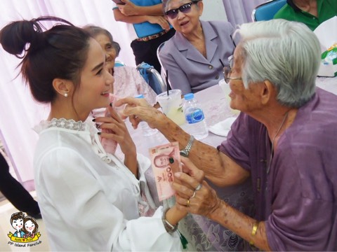 นอกจากนี้ พี่พลอยและคุณแม่แหม่ม ยังร่วมกันมอบเงินค่าขนมให้คุณตาคุณยายคนละ 100 บาท ไม่เฉพาะแต่กับคุณตาคุณยายที่ร่วมทานอาหารวันนั้นแต่ยังฝากไปให้ท่านอื่นๆ ในบ้านพักคนชราด้วยค่ะ