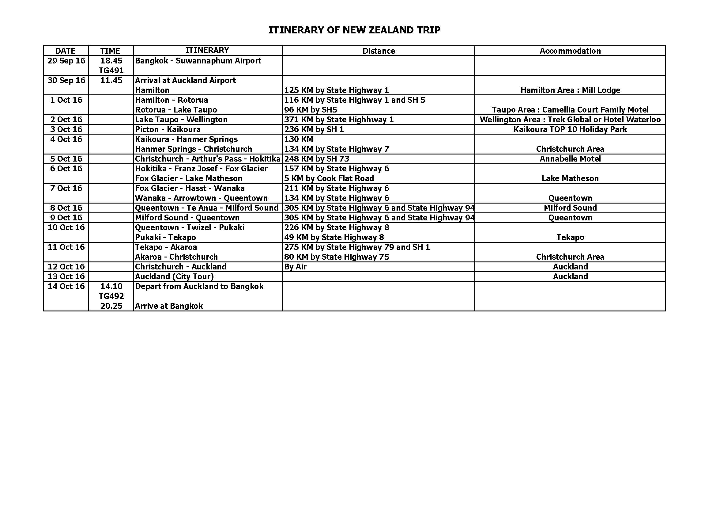 วางแผนจะไปเที่ยวนิวซีแลนด์ (เกาะเหนือและเกาะใต้) โดยไปกลับจาก Auckland ช่วงวันที่ 30 กันยายน - 14 ตุลาคม ตามภาพตารางโปรแกรม จะขอรบกวนปรึกษาดังนี้ครับ