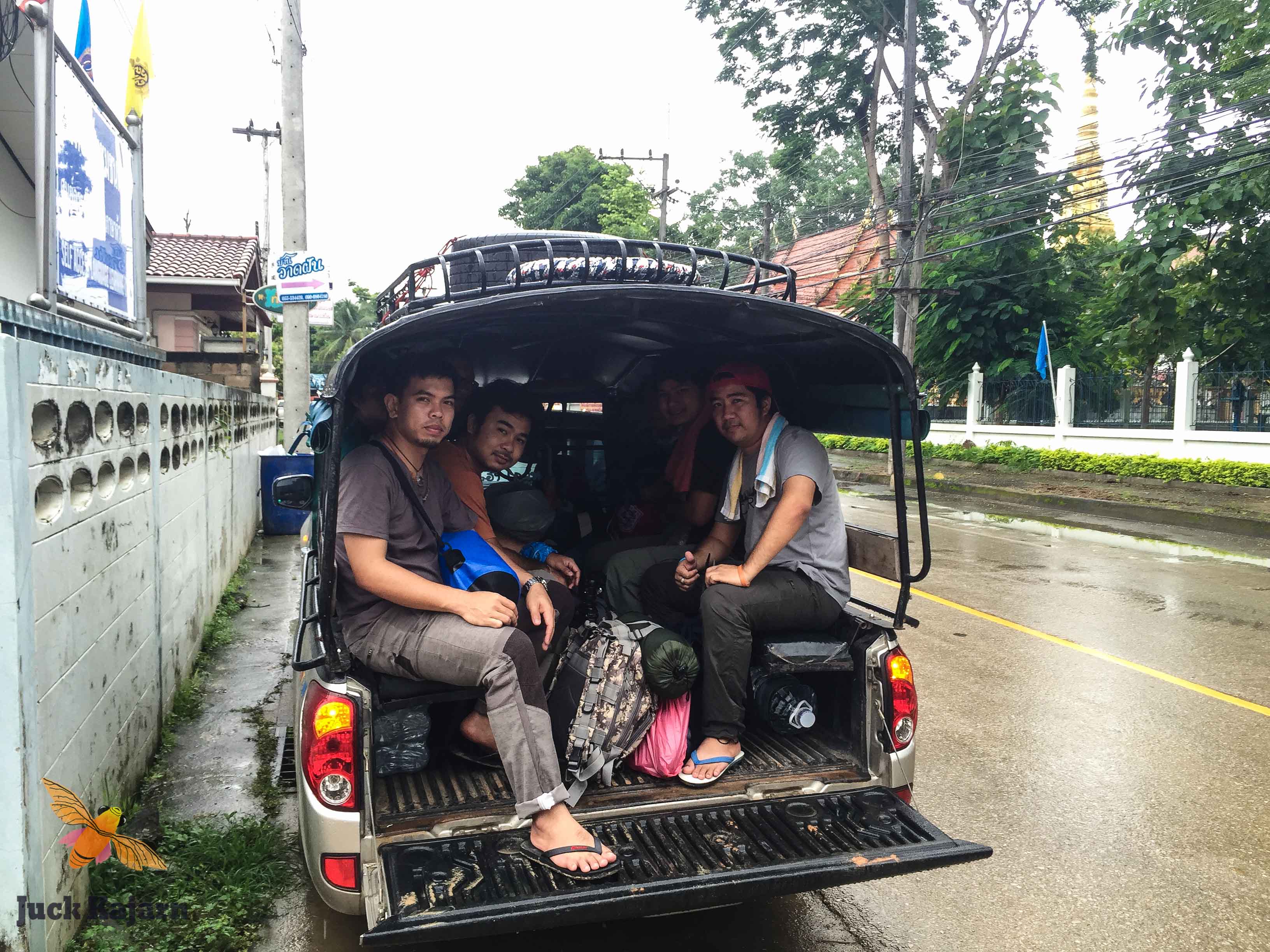 เช้าวันที่ 13 เก็บของ เตรียมตัวเดินทาง รถมาส่งเราทีจุดเริ่มต้น บริเวณ ทุ่งนาแถวหมู่บ้าน