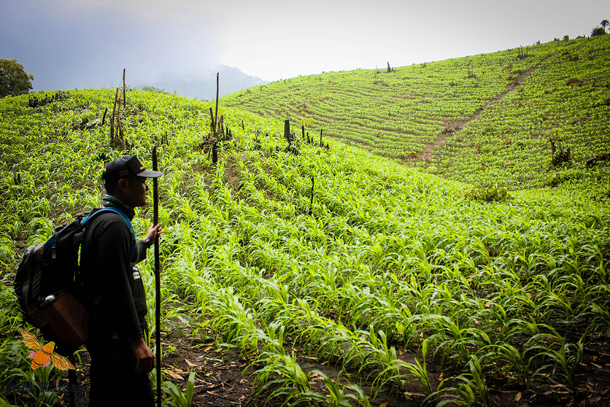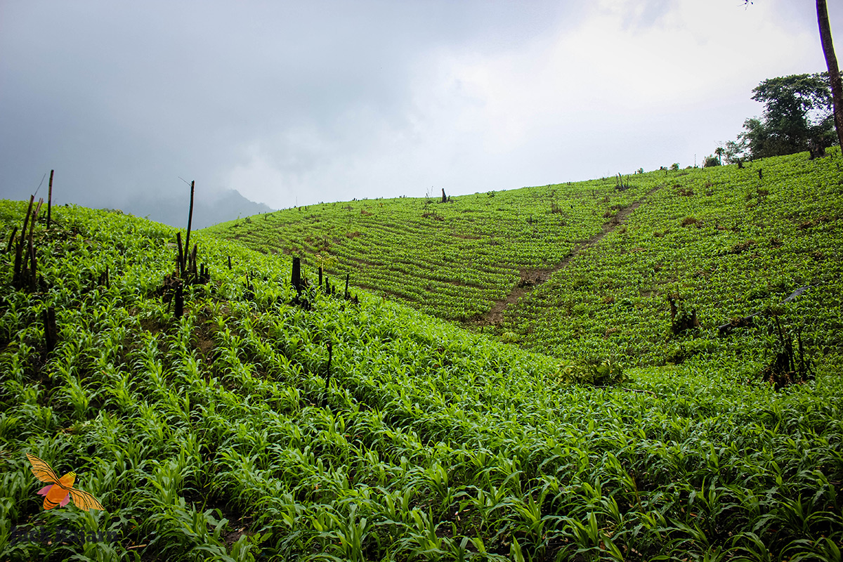 เดินผ่านไร่ข้าวโพดแล้วก็เข้าป่าอีกรอบก็จะถึงจุดกลางเต็นท์จุดแรกเรา