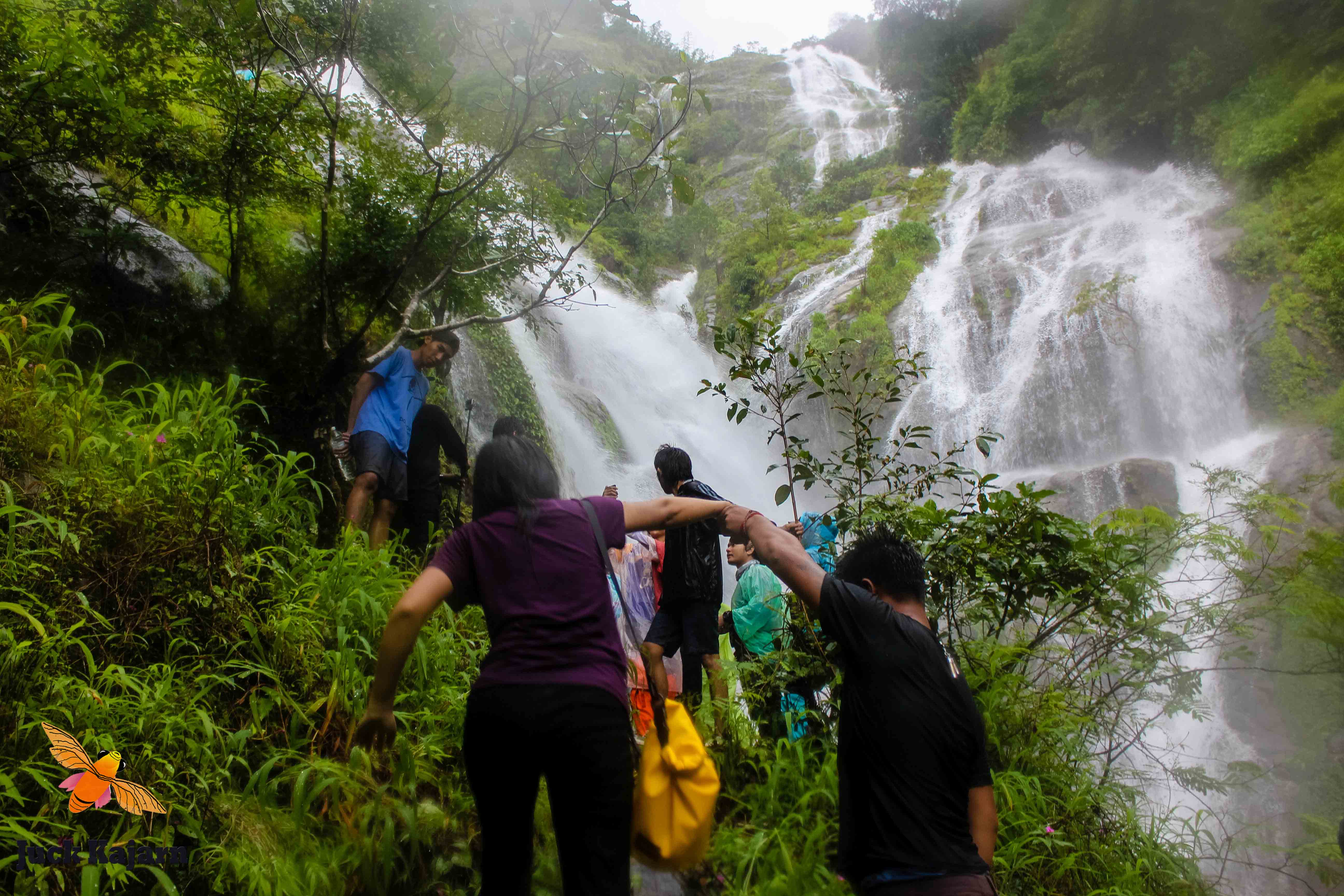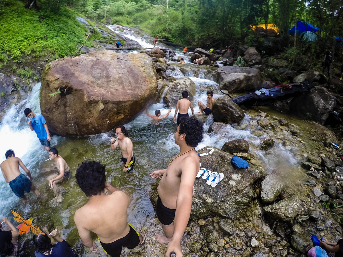 ซึ่งเราเอาสัมภาระไว้จุดนี้เพราะเราจะเดินตัวเปล่าขึ้นไปดูน้ำตกแล้วกลับลงมาพักที่จุดนี้ เพราะเราเหลือเวลาแค่คืนเดียว จุดนี้อยู่ติดกับน้ำตกชั้นล่าง เราต้องข้าม แล้วขึ้นไปดู ข้างบนสุด