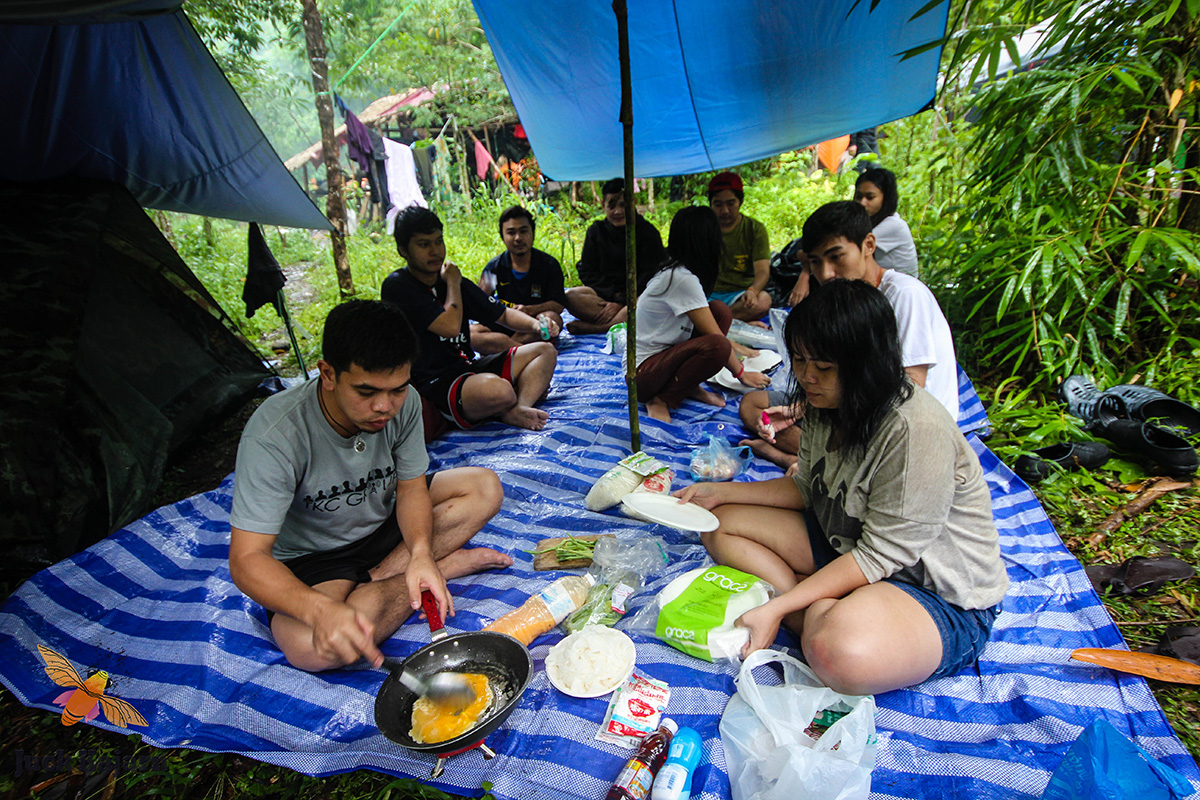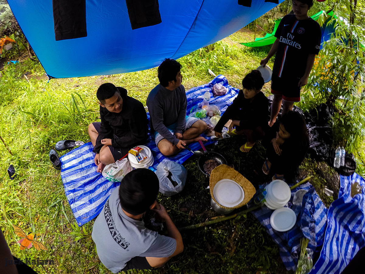 ถึงจุดตั้งแคมป์ เราก็รีบกลางเต็นท์ อาบน้ำทำกับข้าว เพราะเดี๋ยวจะมืดก่อน
