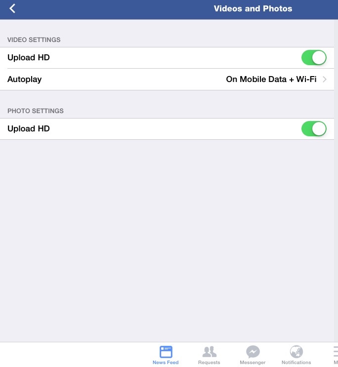 เลือก. Setting -> videos and phothos. -> upload HD