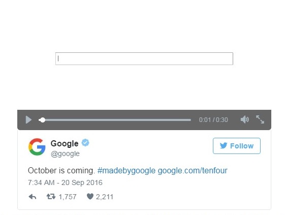 โดยเหตุการณ์วันที่ 4 ตุลาคมที่จะถึงนี้ มีการประกาศออกไปทางสื่อยูทูป โดยแสดงให้เห็นถึงแถบค้นหาแนวนอนขนาดใหญ่บนหน้าเว็บไซต์ที่คุ้นเคย จากนั้นค่อยๆ แปรรูปร่างช้าๆ เป็นสี่เหลี่ยมคล้ายรูปทรงของโทรศัพท์มือถือ พร้อมกับมีเสียงพูดประกอบว่า “Come and get your love” น่าผิดหวังเล็กน้อยที่วีดีโอดังกล่าวไม่ได้มีการพูดถึงชื่ออุปกรณ์ที่คาดหวังไว้ แต่มีการปิดท้ายด้วยโลโก้ตัว G ซึ่งเป็นโลโก้ของบริษัทบริเวณด้วยขวา