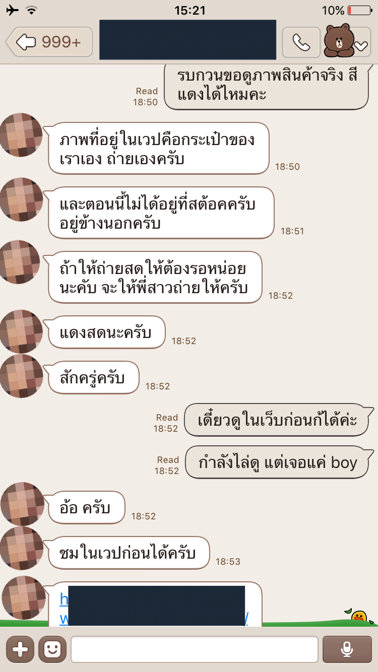 เราเห็นเพจขายกระเป๋าก็อปแบรนด์เนมในเฟสบุคและเว็บของทางร้าน ดูจากรูปแล้วสินค้ามีคุณภาพดี ราคาคุ้มค่า สนใจอยากได้ จึงแอดไลน์ไปถามรายละเอียดจากร้านดังกล่าว