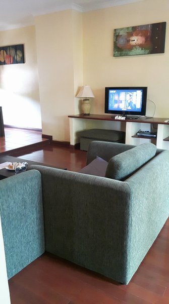 เข้ามาในบ้านจะเจอโซฟากับโทรทัศน์ค่ะ มีเครื่องเล่นCDด้วยค่ะ
