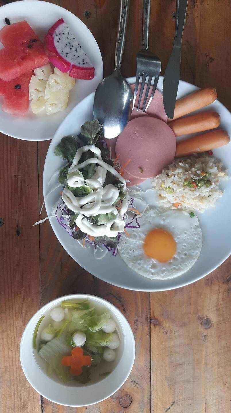ที่นี่มีบริการพร้อมอาหารเช้า เสาร์-อาทิตย์ เป็นแบบบุฟเฟ่ต์ค่ะ วันธรรมดาจะเป็นเซทค่ะ