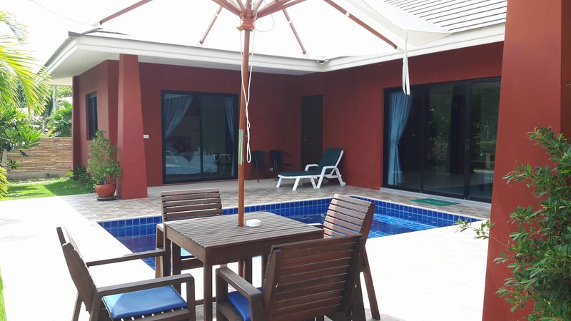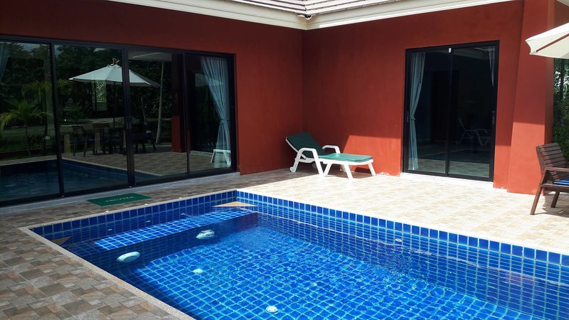 แอบถ่ายมาค่ะ ไม่มีคนเข้าพัก บ้านขนาดกลางมี 3 หลัง บ้านนี้เล่นน้ำได้ส่วนตัวค่ะ เพราะสระจะอยู่ทางด้านหลังบ้าน
