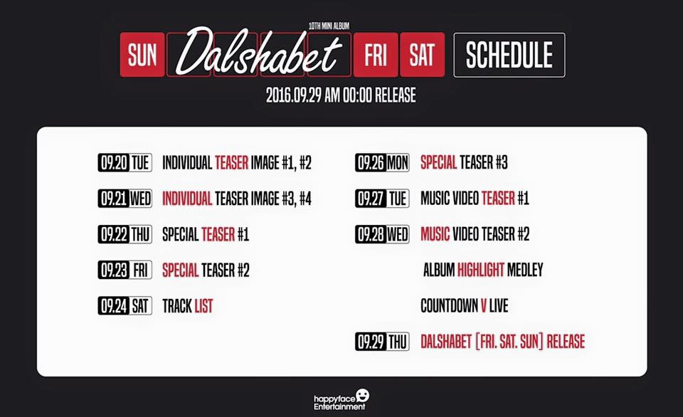 6 สาวเกิร์ลกรุ๊ปวง ‘Dalshabet’ เตรียมกลับมารวมตัวกันเต็มวงอีกครั้งในเดือนตุลาคมนี้ หลังจากที่สาวๆได้คัมแบ็คครั้งสุดท้ายด้วยสมาชิก 4 คนด้วยเพลง "FRI. SAT. SUN" เมื่อเดือนกันยายนปี