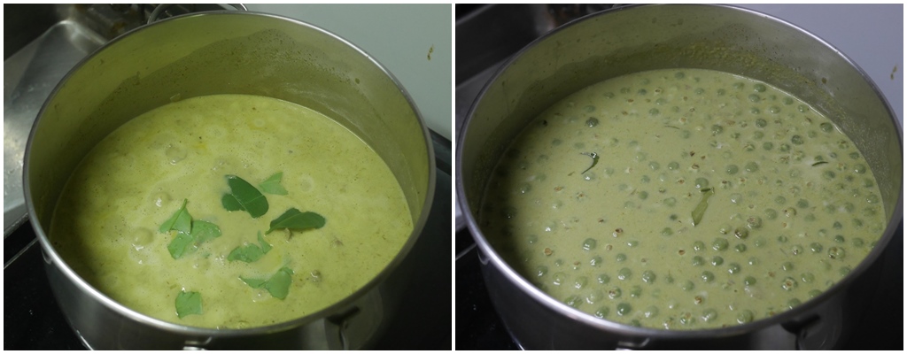 เติมหัวกะทิที่เหลือ ใส่ใบมะกรูด มะเขือพวง พอเดือด ปรุงรสด้วยน้ำปลา