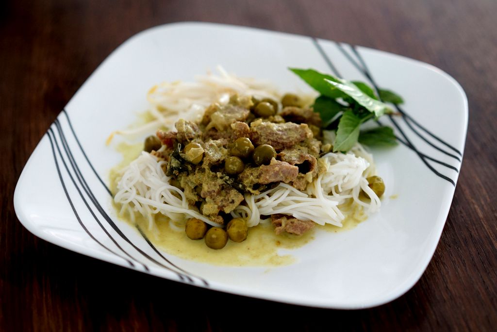 ซื้อเนื้อแพะมาจากห้างแมคโครนำมาทำแกงเขียวหวานทานกับขนมจีน