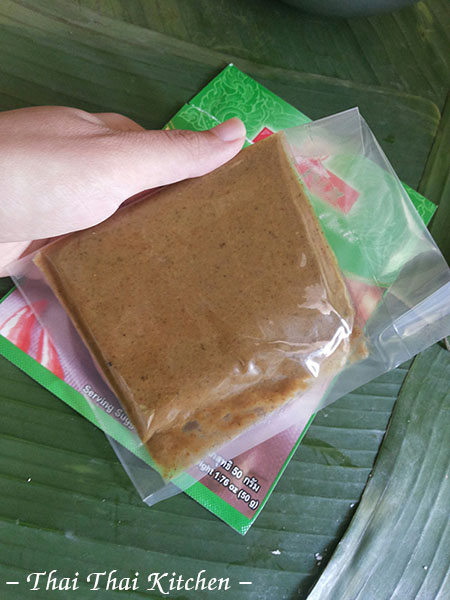 เครื่องแกงใช้แบบสำเร็จรูป เรายังไม่เคยตำเครื่องแกงเขียวหวานเองเพราะต้องเตรียมส่วนผสมหลายอย่าง พอหาได้ไม่ครบก็พาลหงุดหงิดไปอีก ใช้พริกแกงแบบนี้ก็สะดวกดีค่ะ