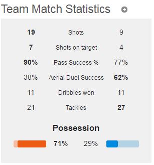ชนะไปแบบขวัญผวา 2-1 พร้อมจำนวนช็อตที่ยิงน้อยมาก ๆ นานมากแล้วที่เห็นตัวเลขแค่สิบ ไฮไลท์รวม https://youtu.be/I8I1tcfg4ig ไฮไลท์ประตูรวม https://youtu.be/9GqiYHZ6O
