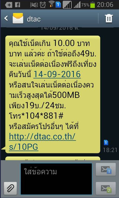 เวลา18.21 แจ้งว่าใช้เน็ตเกิน10บาท งงๆเลยครับเวลา