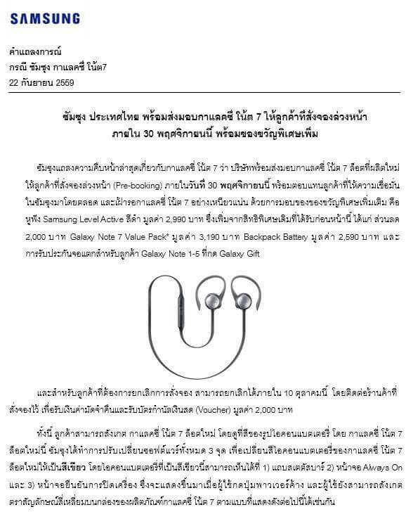 ประกาษอย่างเป็นทางการเรื่องการส่งมอบ note 7
