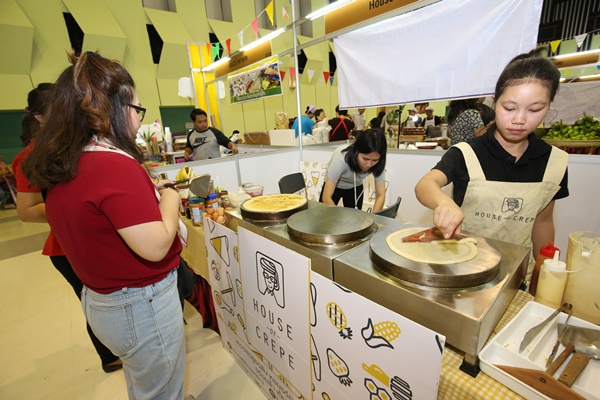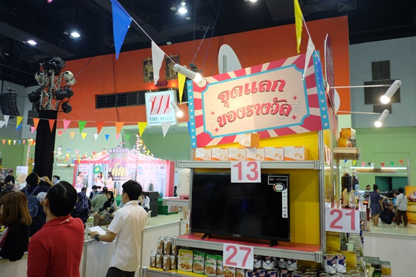 ผังเลย์เอาท์ในงานแบ่งออกเป็นสองฝั่ง และเวทีกิจกรรมอยู่ตรงกลาง ส่วนที่นั่งรับประทานอาหารจัดไว้บริเวณริมฝั่งซ้าย-ขวาในฮอลล์ ซึ่งจัดเอาไว้รองรับเกือบ 20 โต๊ะเลยทีเดียว หรือใครสะดวกเดินไปกินไปก็ชิลอีกแบบ อีกกิจกรรมที่เป็นกิมมิคสนุกๆ ภายในงาน หากซื้ออาหารครบ 100 บาท จากร้านไหนก็ได้ จะได้รับคูปองชิงโชค หากสะสมครบ 3 ใบ สามารถร่วมสนุกสอยดาวชิงรางวัลได้ สำหรับรางวัลใหญ่เป็นทีวี หม้อหุงข้าว กาน้ำ และข้าวของเครื่องใช้ภายในบ้านอีกมากมาย