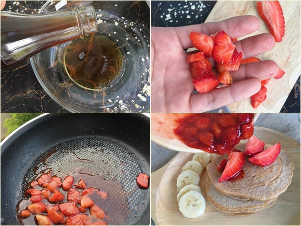 "แพนเค้กซอสฮันนี่ไซเดอร์" สูตรคลีน แป้งข้าวโอ๊ต หวานฉ่ำ ไม่อ้วน.. (Strawberry Cider Sauce)