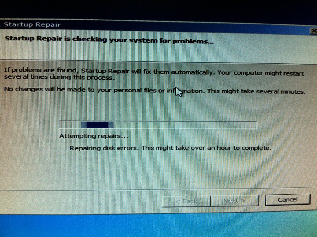 เริ่มแรกผมเจอปัญหา Start up repair , Repairing disk error ครับก็ปล่อยมันแก้ไขไปจนเสร็จเข้า Window 7 ได้