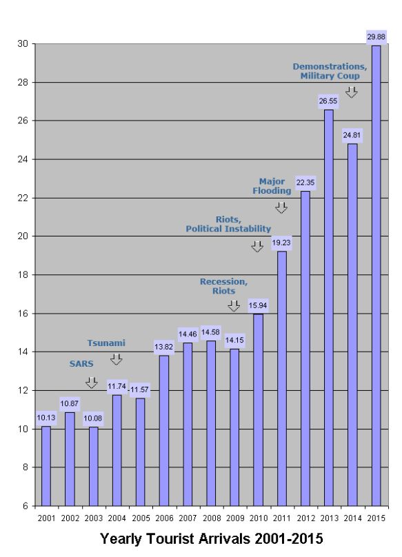 และคุณคิดว่า รัฐประหารไปแล้ว นักท่องเที่ยวจะลดลงทุกปีจนเป็น ศูนย์ หรือ? โปรดใช้สามัญสำนึกด้วย