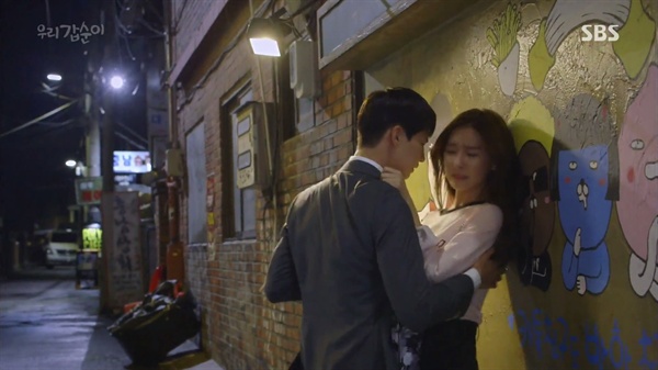 นี่เป็นฉากบังคับจูบตามขนบละครเกาหลี กัพซุนบอกเลิกกัพดลแล้วเดินจากมา กัพดลคว้าข้อมือกัพซุนแล้วกดบนกำแพงจากนั้นก็จูบเสียดื้อๆ กัพซุนขัดขืนเล็กน้อยแล้วใจอ่อนจูบตอบ