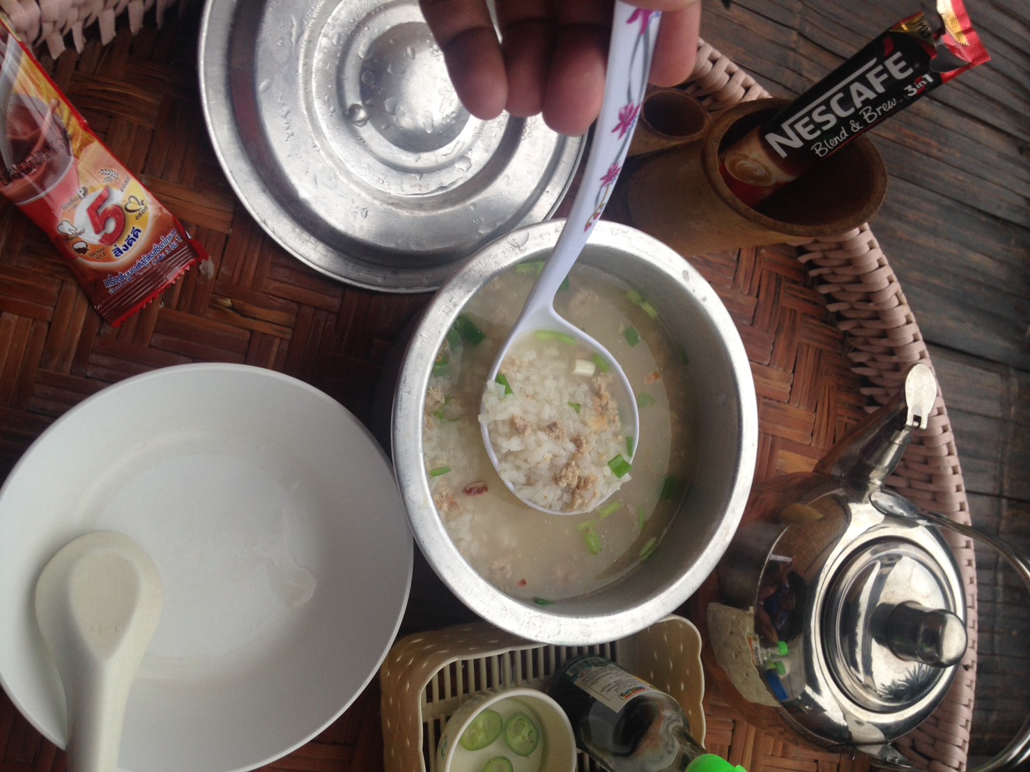 โหเยอะอีกแล้ววววววว (จขกท.ไม่ได้เห็นแก่กินนะ จริงๆแล้วเราจะแพลนว่าจะไปกินร้านพรเพ็ญขาหมูเสวยด้วย อยากกินอย่างอื่นดูว่ามีอะไรให้กินบ้าง เห็นเจ้านี้อร่อยจริงอะไรจริง) แต่มานึกขึ้นมาได้ว่าคนที่นี่อยู่บนดอยกว่าจะหาข้าวมาให้เรากินนี่ ลำบากแค่ไหน เรามีสำนึก ทำไงล่ะ ต้องจัดให้หมด ต้องหมดจริง บอกตามตรง ของเมื่อคืนยังไม่ย่อยเลย มาตอนเช้าก้อเยอะล่ะ จัดให้หมดเลย สรุปว่าที่คิดไว้ต้องล่มไป เอาไว้คราวหน้ามาใหม่แล้วกัน