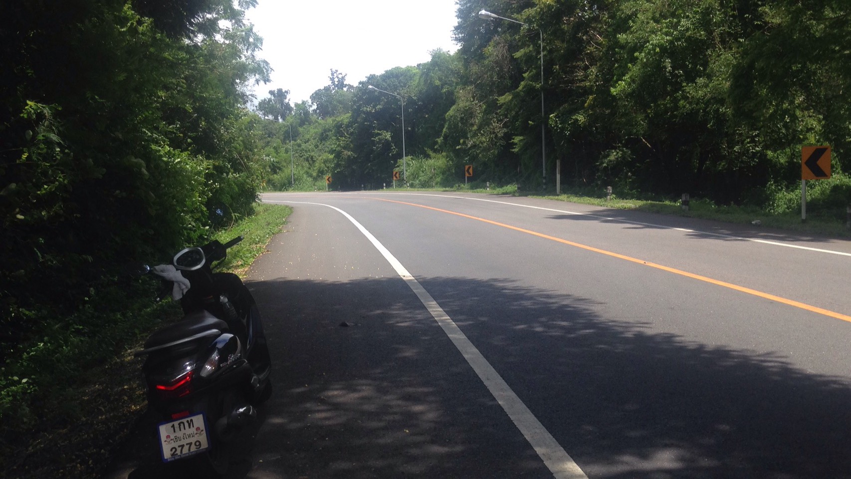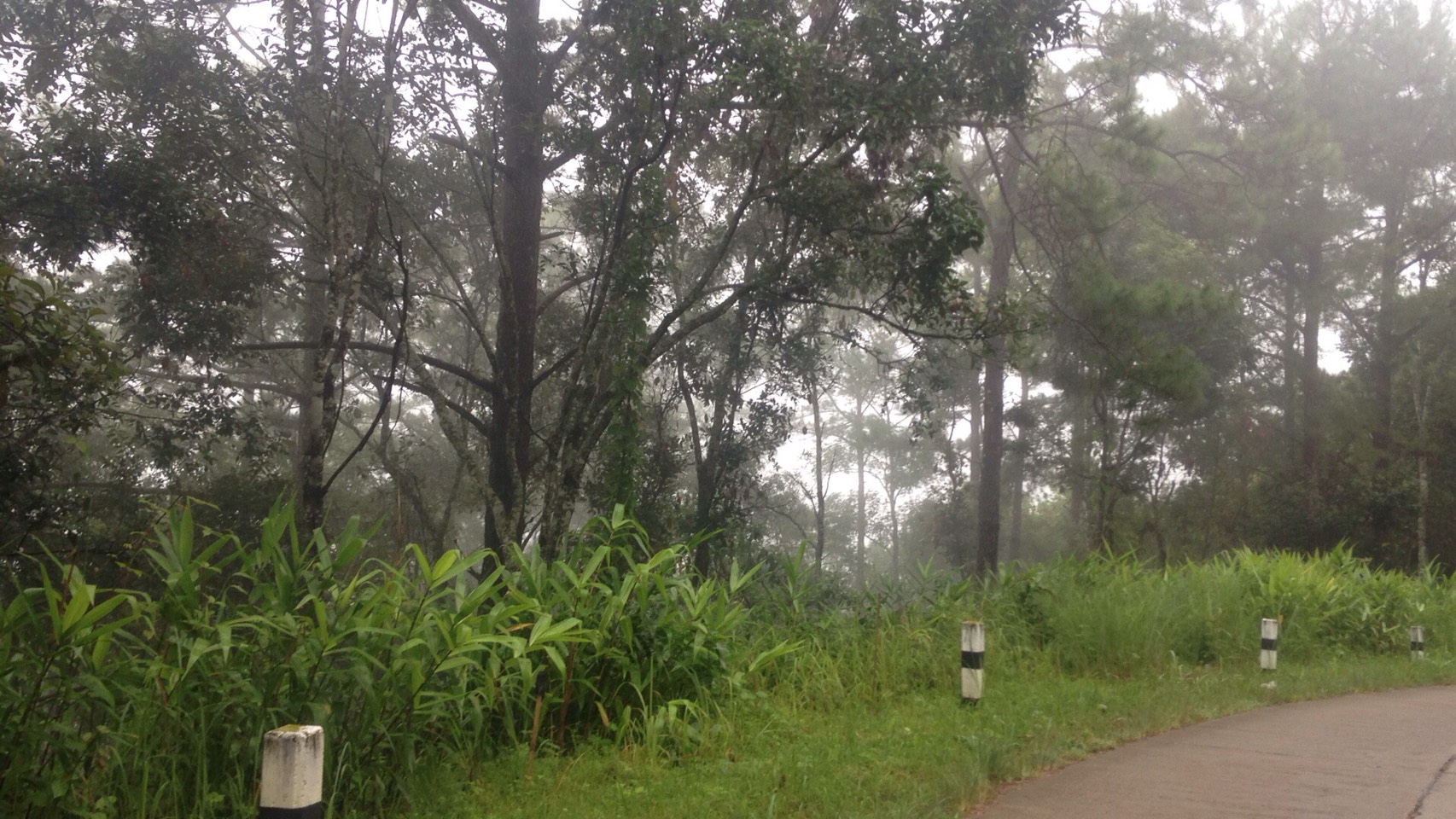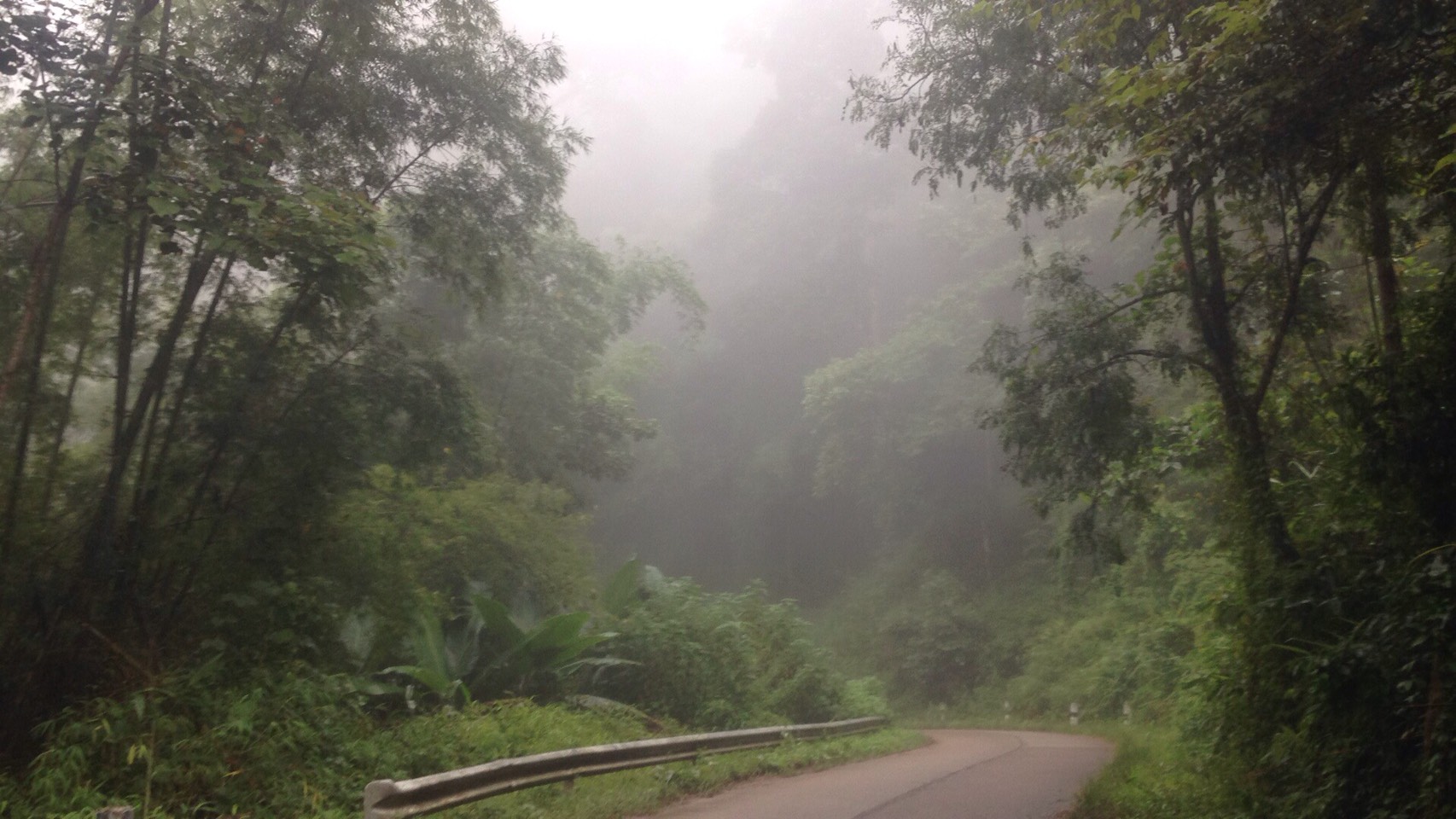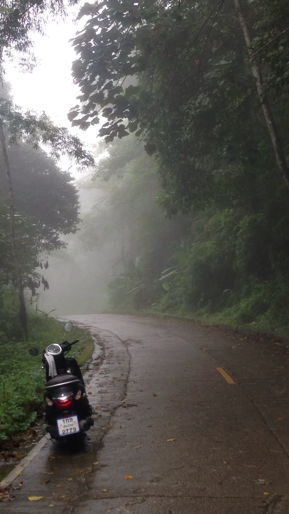 ก่อนจะลงหมอกหนามาก แต่ดีหน่อยไม่ค่อยมีรถเท่าไหร่ มีแค่รถสองแถวขึ้นมารอบแรกเท่านั้นสวนไปมา แต่เราต้องบีบแตรตลอดนะเฉพาะทางโค้ง และศาลเจ้าที่เจ้าทางด้วย เพื่อเคารพสิ่งศักดิ์สิทธิ์แถวนั้น จะได้ไม่เกิดอุบัติเหตุด้วย พวกเขาจะได้คุ้มครองเราด้วยล่ะ แต่ตอนลงนี่หูอื้อหนักมากกกก กว่าจะหานี่เกือบถึงตัวเมืองถึงจะหาย เอาเรื่องเลย แต่ตอนลงนี่ลงมาแป๊บเดียวเองนะ ประมาณเกือบชั่วโมงได้ แต่ทำไมตอนขึ้นมันนานว่ะ ตั้ง 2 ชั่วโมงกว่าจะถึงที่พัก โครตเหนื่อยมาก แต่ตอนลงชิวๆๆมาก แต่งงอยู่ที่ว่า ทำไมขี่ผ่านหมอกไปมา ทำไมเราเปียกล่ะ เปียกทั้งตัวเลย ทั้งที่ฝนไม่ตกเลย งงตัวเอง ก้อเลยโทรถามเพื่อนไม่รู้เป็นไรอยุ่ๆตัวก้อเปียก เพื่อนขำก๊ากเลย เราก้อขำขนาดนั้นเลยหรอว่ะ กูจริงจังนะโว้ย เพื่อนบอกไม่รู้จริงอ่ะ เราตอบ เออดิกูงงอยู่เนี้ย แล้วกูโทรไปถามเพื่อ หรือให้ขำ เพื่อนก้อถามว่าแล้วหมอกเกิดจากอะไร เราตอบจากไอน้ำว่ะ ทำไมหรอ เพื่อนบอกก้อใช่ดิ มันก้อเลยเปียก
